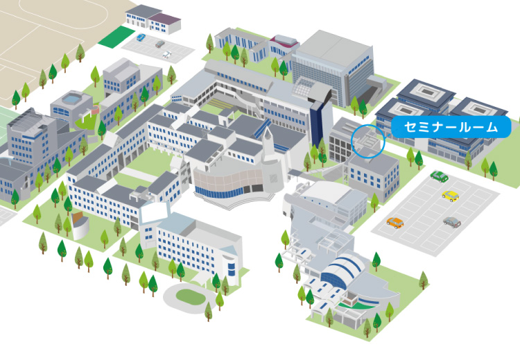 セミナールームは、講義棟6キャリア支援課奥のスペースとなります。