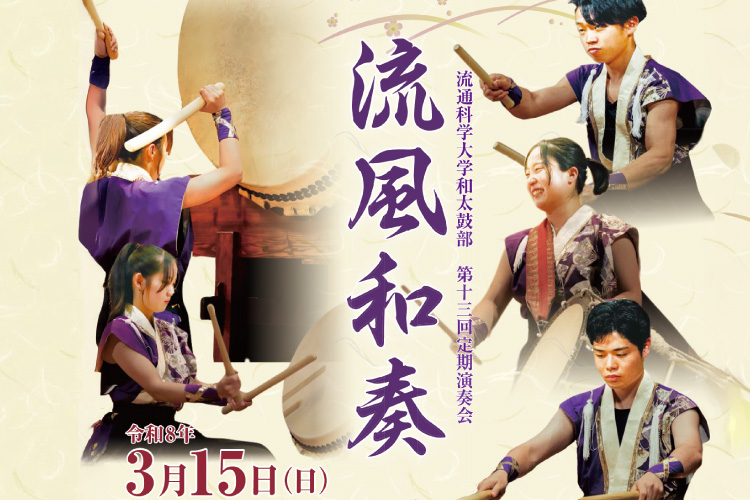 2026年3月20日、流通科学大学和太鼓部による第十三回定期演奏会『流風和奏』が開催されます。